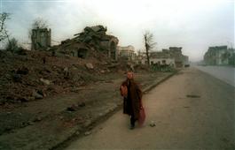 RUSSIA. Grozny, Chechnya. 03/2002. Destruction in the city center....