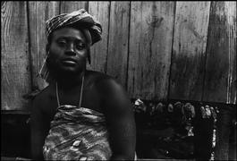 NIGERIA. Lagos. 1970. Village of Falomo. Woman of the Ganvie tribe, fishermen from Dahomey, at rest on the porch of her hut.