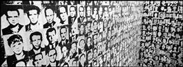 HUNGARY. Budapest. September 2004. House of Terror Museum. Wall with pictures of Communist or Nazi victims.