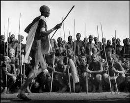 SOUTH SUDAN. A Dinka chieftain exhorts his warriors at Duk Fadiat. 1949.