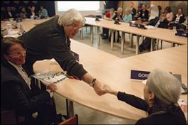 Richard Gere meeting Nadine Gordimer at session dealing with the "marketing" of AIDS awareness.