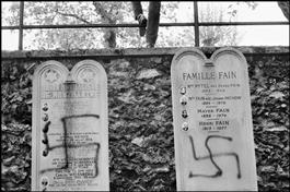 FRANCE. Bagneux. April 1981. Anti-Semitic inscriptions in the Jewish section of the Bagneux cemetery. 70 graves were desecrated.