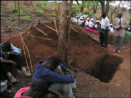 MALAWI. Mpama district. Funeral of an Aids victim. In the background, members of the Seventh Day adventist congregation.