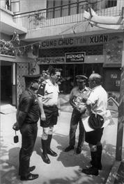SOUTH VIETNAM. Vietcong prisoners go home. Canadian colonel with Four-Nation trace supervisory from Canada, Indonesia, Poland, Hungary outside Bien Hoa hotel. 1973.