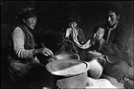 TIBET. Xigaze, about 300 Km west of Lhasa, in the Himalaya Mountains. Family in the morning. Tibet, 2002