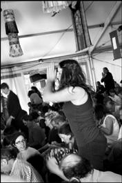 FRANCE. Dordogne. Le Moustier village. Tibetan Buddhist master DZONGAR Khyentse Rinpoche of the Nyingmapa sect, teaches at the Tashi Palbar Ling temple of the Chanteloube association in La Sonnerie. A devotee performs prosternation before the teaching.