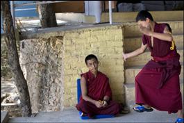 INDIA. Himashal Pradesh State. Dharamsala. JEPA DATSANG Institute of Higher Tibetan Studies. Novices ask theological questions by clapping their hands to confuse the answeree who is seated.