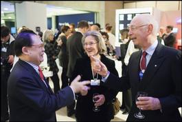 SWITZERLAND. Davos. World Economic Forum. Opening reception. Victor Chu with Klaus and Hilde Schwab. 2011
