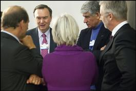 Cocktail for business and political leaders. Mike Duke of Walmart speaks to a small group.