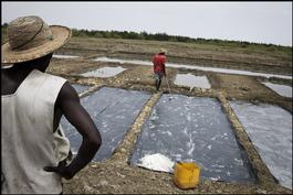 Salt fields. SAlt production from seawater is a used as an important side income for many farmers in the area.