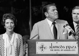 USA. Kansas City MO. 1976. Republican National Convention: Nancy and Ronald Reagan, Paul Laxalt on right.