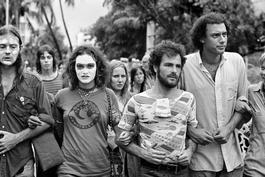 USA. Miami. Republican Convention. August 1972. Activist Jerry RUBIN (2nd from right) marches at an anti Vietnam war rally.