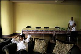 A fireman rests at the headquarters of the 5th company fire station, inside the fire station located in "Zona 3", firefighters work 24-hour cycles. During the night, they are assisted by volunteers. Most of them have two jobs, as their $200 salaries are insufficient to cover the cost of daily life.