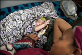 ETHIOPIA, Bale. February 7, 2013. Woman lies with her newborn baby. CCM is providing materials to Bale hospital.