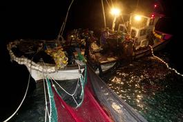 South KOREA. East coast. From and aboard senners boats from the harbour of POHANG. This night they caught 8 tons of herrings.
