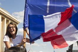 FRA. Paris. Trocadero. May 1 Labor Day rally in support of Nicolas Sarkozy in the last week of the presidential election campaign. Young supporters. 2012
