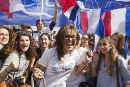 FRA. Paris. Trocadero. May 1 Labor Day rally in support of Nicolas Sarkozy in the last week of the presidential election campaign. Young supporters. 2012