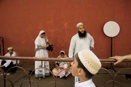 INDIA. Mumbai. Bohra Muslims at Bhendi Bazaar.