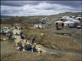 MONGOLIA. Zamaar. Ninja site. In a country where 3/4 of the population lives on $2 a day, many Mongolians are moving to the fringes of mining companies fields to prospect gold. Tent cities spring up around sites as the gold prospectors are moving to the prairie. The gold prospectors are locally called Ninjas. 2006.