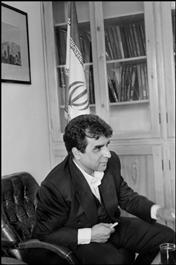 IRAN. Tehran. Iranians talk about President Mahmoud AHMADINEJAD. The Professor: Abbassnia is a professor in the College of Civil Engineering where the President taught. Behind him stands the flag of Iran. He says : "Ahmadinejad might be driven by religion. But he is also a nationalist. He understands that Iran, for a long time, acted like an old person who has lost his memory. He wants Iranians to look back to their proud history and gain strength through this. First I thought he brought up the Holocaust issue out of coincidence , but soon it became obvious that he follows a clear strategy. I don’t know which one though. He has a very brilliant mind and is a perfect tactician. His speeches used to be too sophisticated. I told him this. Now he seems to have the right tone that appeals to the simple people.