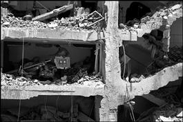 PALESTINE. Gaza city. A Palestinian recuperates personal belongings in his apartment destroyed by Israeli armour which occupied the enclave for a week.