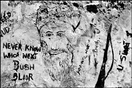KENYA. Lamu. A graffiti shows Al Qaeda chief Ben Laden and warns US President George Bush and British PM Tony Blair "Never knows who’s next".
