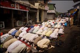 INDIA. Mumbai. 2006. On Dharavi's Main Road, muslims gather for...