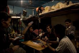 CHINA. Shanghai. Migrant workers (Mingong) in dormitories on a construction site in Pudong. May 2007.