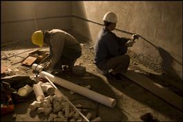 CHINA, Shanghai, May 2007, Migrant workers (Mingong) on the construction site in Pudong, led by the French Shanghai-Paris Architecture Studio,