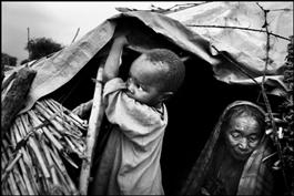 CHAD. GOZ BEIDA. 2007. A blind woman with her granchild in Goz Beida, a group of camps for Sudanese refugees and Chadian IDP's.