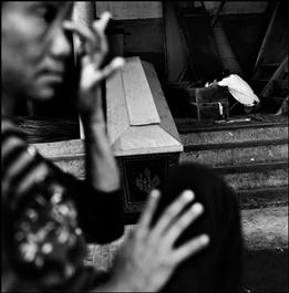 CAMBODIA, Wat Prea Puth, Phnom Penh, 1998. Youanara's wife grieving his death from AIDS. She too is infected.