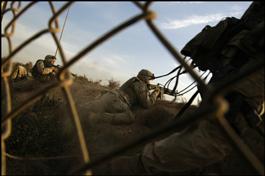 IRAQ.BAghdad.04/19/03.US marines come under fire near the Sheraton...