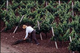 ITALY, Sicily,Near Alcamo. Working in wineyard.