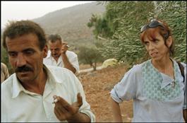 West Bank. Village of Yanoon. Palestinian olive harvest with the help of Israeli peace activists Ta'Yush (Common living). Their presence protects the harvesters against attacks by Israelis from the nearby settlement of Itamar.