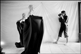 IRAN. Tehran. Art photographer Azadeh AKHLAGUI photographs two models, Zahra and Seed, wearing the strict black chador. Both models are hairless from birth, due to a genetic accident. Ms AKHLAGUI's photo is meant as an allegory of the Islamic Republic which prohibits women displaying their hair in public.