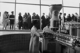 IRAN. Tehran. 1956. Fascinated Iranians spend their Friday afternoon holidays watching the bottling plant of the new Pepsi Cola factory.