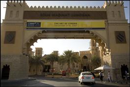 UAE. Dubai. Dubai International Film Festival. The entrance to the Madinat Jumeirah shopping center advertises the festival.