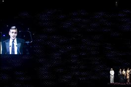 UAE. Dubai. Dubai International Film Festival. American actor George CLOONEY appears on a giant screen on opening night.