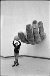 France. Etretat. Magnum: Jean Gaumy with sculpted hand.