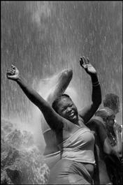 HAITI. Saut d'eau. 1999. This waterfall is the pilgrimage place best representing the syncretism between catholicism and voodoo. The pilgrims, raising their hands to the sky, ask the Lwas (spirits) of Voodoo for favors under the waterfall. On the 16th of July, when tens of thousands of pilgrims gather there, they ask the Virgin, who appeared under the waterfall once, for the same favorsin the nearby church built in the 19th century.