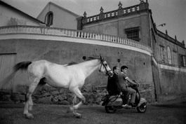 SPAIN. Galicia. Vigo. 1987. The horse that bathes in the sea....