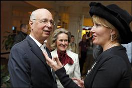 Welcome reception at the Hotel Belvedere. Actress Emma Thompson with Klaus and Hilde Schwab.