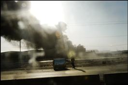 A man walking in the outskirt of Bagdad during the US invasion of Iraq. 2003.