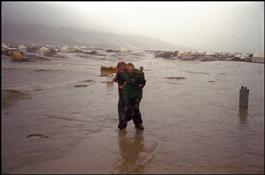 Displaced mother and child on the town outskirts.