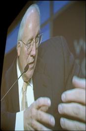 US Vice-President Dick Cheney's address projected onto a giant screen.