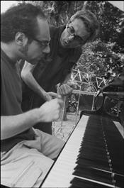 SANTA CECILIA JAZZ ORCHESTRA - Massimo Urbani 10 anni dopo. Soundcheck. From left to right, Italian jazz musicians Vittorio MEZZA (piano) and Fabrizio PIERONI (piano). Giardini della Filarmonica. Monday, June 9th.