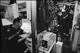 The cabin of the captain. 2sq. metres, the largest in the submarine In the background, the main control room (zone 9).