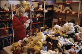 FRANCE. Emmaus charitable association. 2004. Toulouse area. Labarthe-sur-Lèze Community, home to 55 "compagnons". Second-hand sales. Stuffed animals.