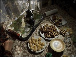ITALY. MILAN. 2008, ITALY. MILAN. 2008. Grattosoglio district, Sharifa's house, tea time,islamic women, prepared table