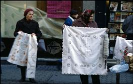 HUNGARY, Budapest. Women selling their manufacts in the streets.